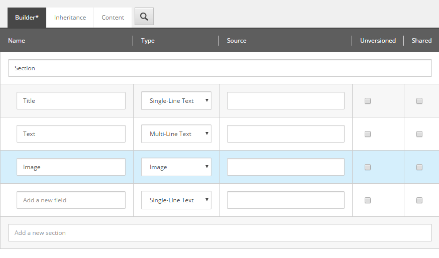When you build and Item in the Content tree based on this Template you will see something similar to this: